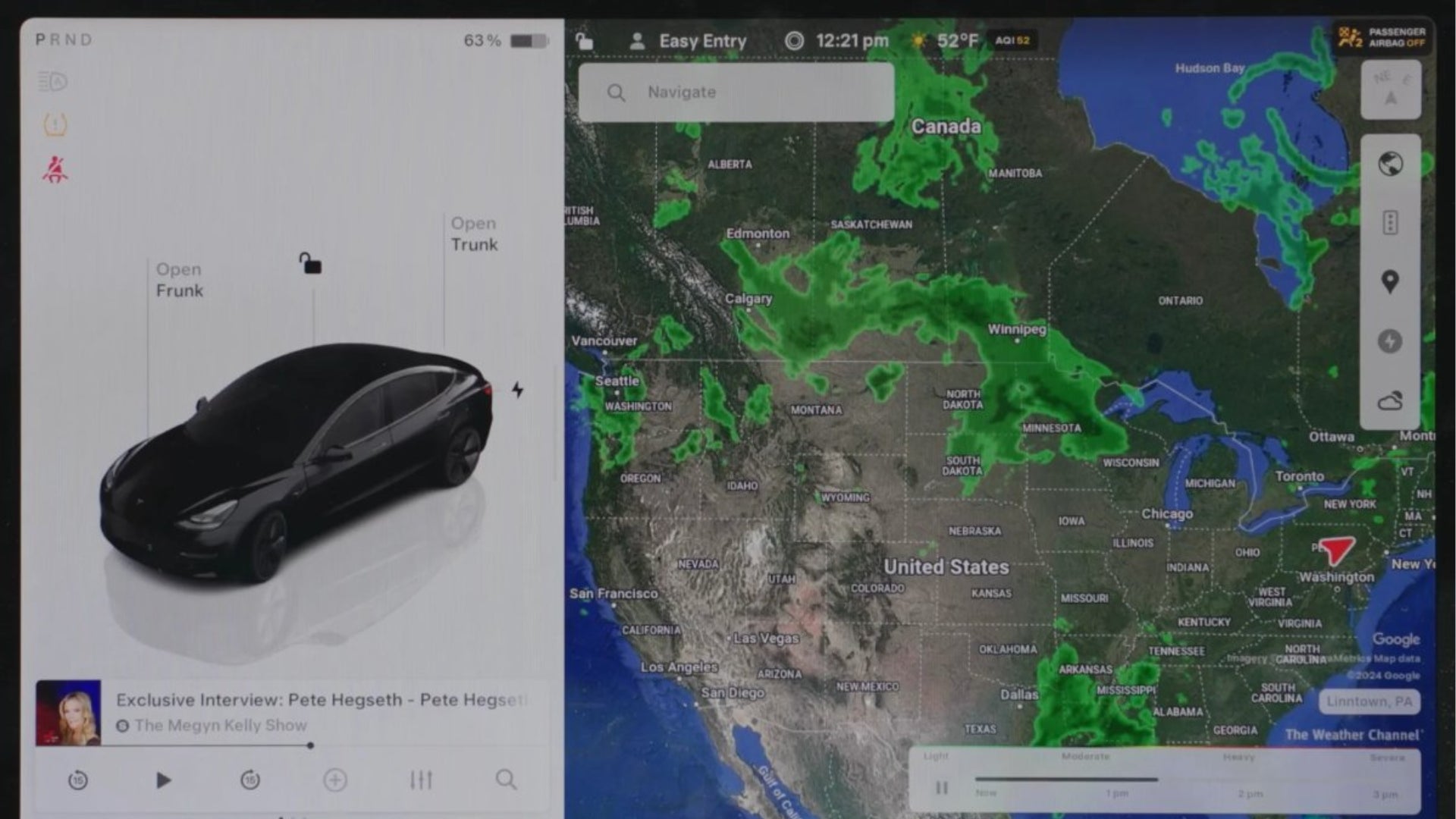 Wetterradar im Fahrzeugdisplay